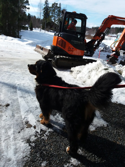 Vuosi sitten meidän tontilla tehtiin vesiputken korjausta, nyt kätketään sähkökaapeleita maan alle.